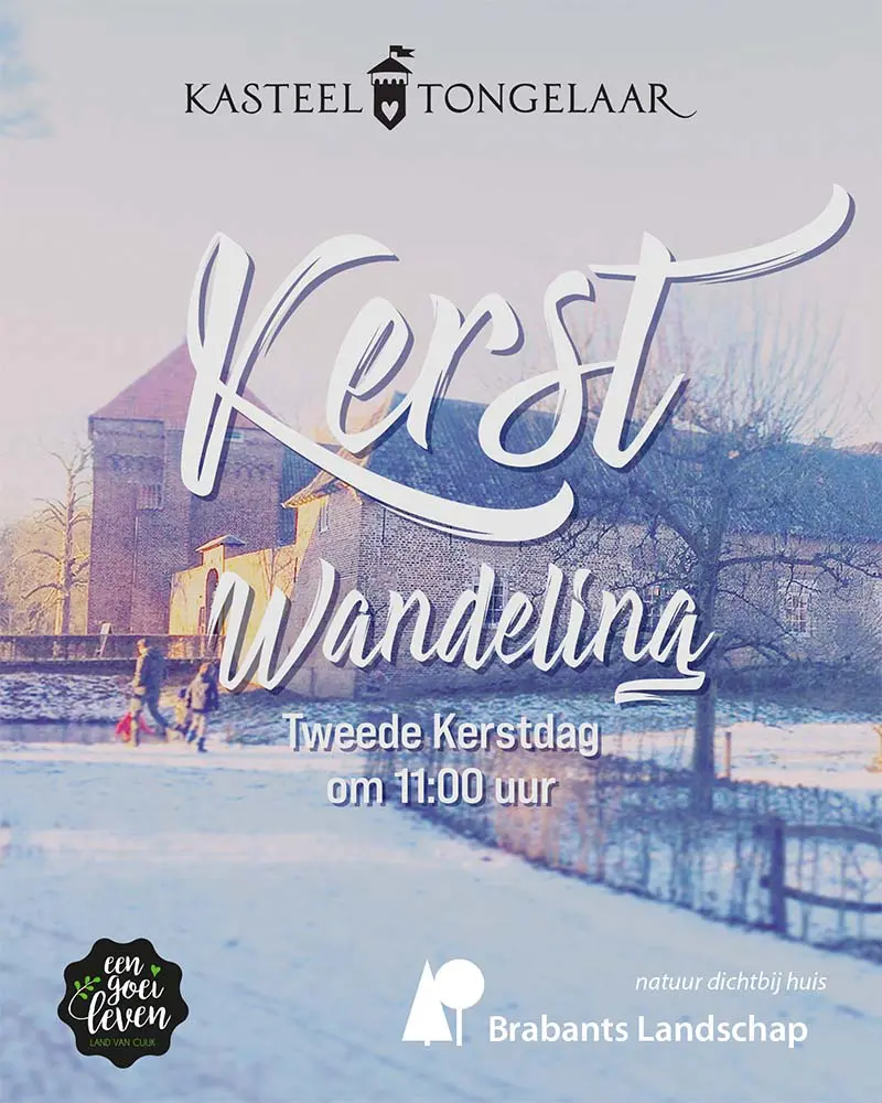 Vier 2e kerstdag op een sfeervolle manier bij Kasteel Tongelaar. Trek eropuit voor een winterse kerstwandeling over Landgoed Tongelaar. Kies zelf een wandelroute of wandel mee met een gids die je alles vertelt over de natuur en de geschiedenis van het gebied.